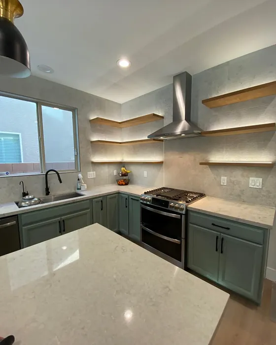 Sherwin Williams SW 9132 on kitchen cabinets (2 photos)