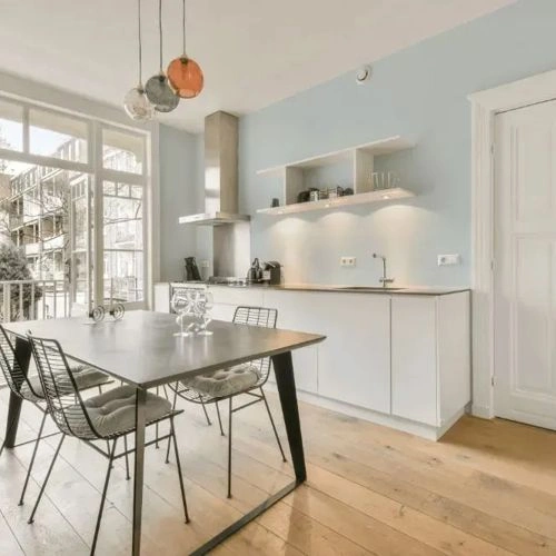 It's important to keep in mind that the same color may appear differently on various surfaces due to the nature of those surfaces. For example, the same shade will look different on a rough wall compared to the smooth surface of cabinets.