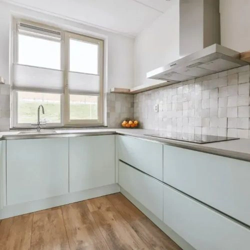 It's important to keep in mind that the same color may appear differently on various surfaces due to the nature of those surfaces. For example, the same shade will look different on a rough wall compared to the smooth surface of cabinets.